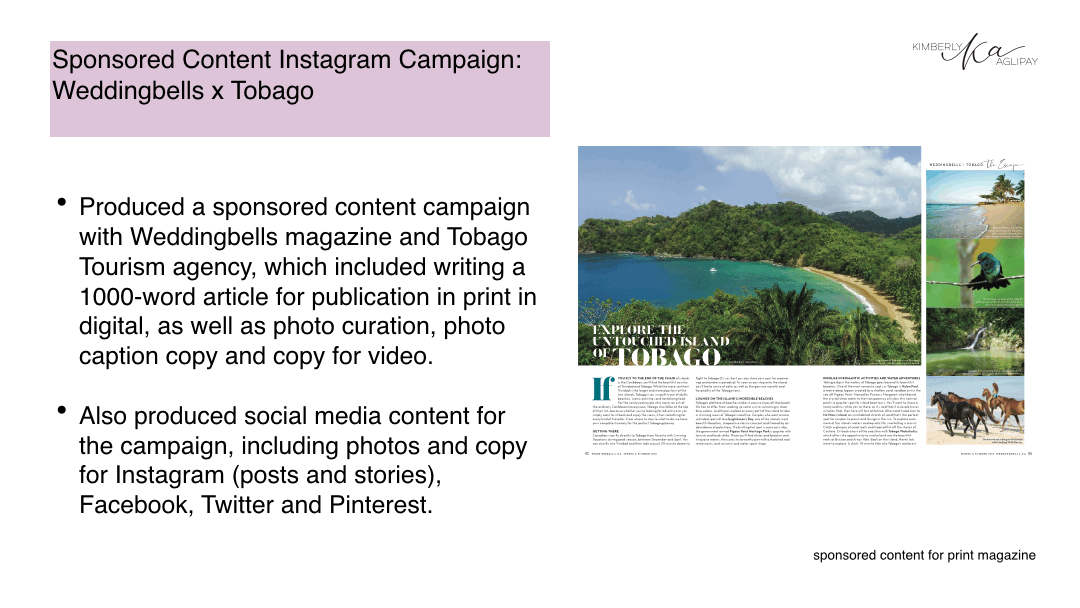 BRANDED + SPONSORED CONTENT INSTAGRAM: Vantage Venues x Weddingbells PRINT, DIGITAL AND SOCIAL: Tobago Tourism x Weddingbells DIGITAL: Vantage Venues x Toronto Life Share this: Share on X (Opens in new window) X Share on Facebook (Opens in new window) Facebook Like Loading...